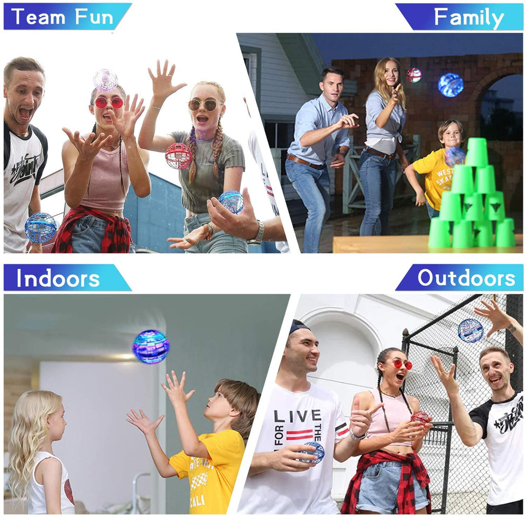 - Safe for Kids: The propelling parts are confined inside the drone ball to prevent eye injuries unlike other flying toys. The flexible spherical "cage" around the device makes it easy to catch and keeps it from breaking (or breaking anything around the house). Great indoor toys.
