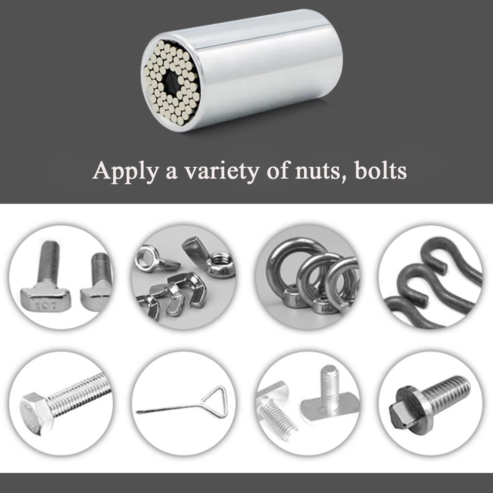Are you a DIY kinda guy (or gal)? Then our Magic Grip Tool is a MUST HAVE gadget for your tool arsenal! A universal socket that grips any shape. 54 steel pins automatically adjust to grip hex nuts, wing nuts, square nuts and even broken or rusted nuts!
