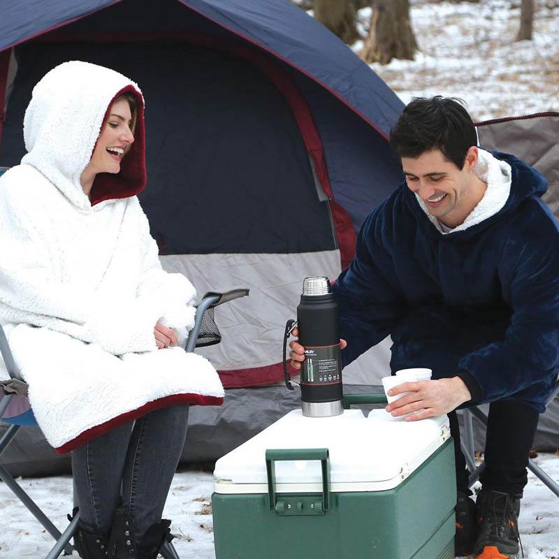 The hooded blanket with sleeves is perfect for home, office, dorms, parties, camping & more. Plush robe is great for men, women & kids! Machine washable.It's an ideal choice for men, women and even children .